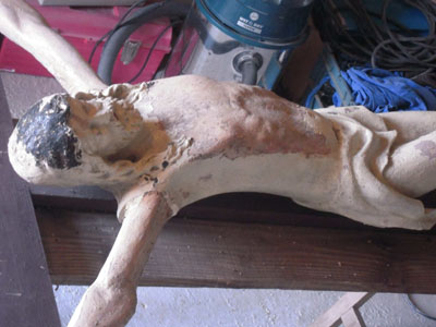 1. Christ en croix avant traitement 2. Christ en croix en cours de dégagement