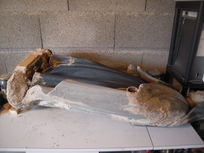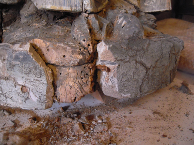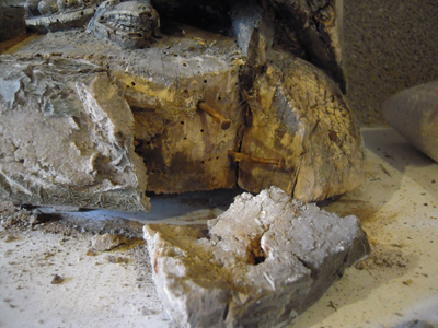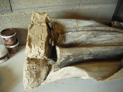 Anciennes restitutions en cours de retrait. La pâte utilisée est très dure. |